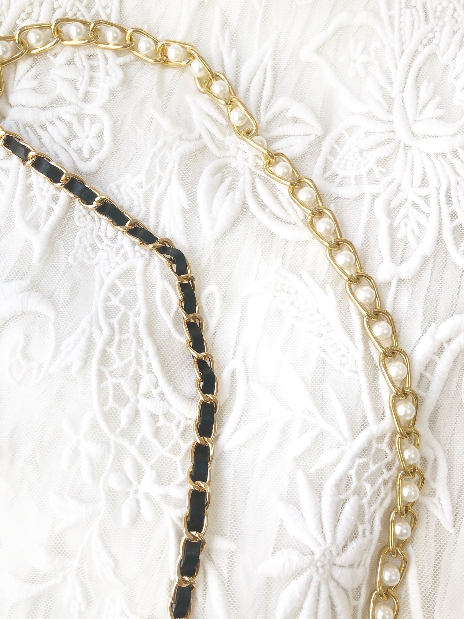 ストラップ種類 ブラックレザーチェーン、パールチェーン